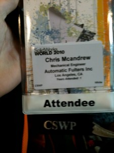 I know I’m all over the place in this post, but that is what Sunday is. Without breakout sessions and the general session to draw the crowd, Sunday is more low key. Round tables, one on one meetings, the start to the partner pavilion and kickoff parties for the User group and Tweetup occupied the rest of my day. One of the more interesting booths right off was Solido. I was turned onto Solido thanks to a post by Josh Mings (Solidsmack) and then by the John Dixon who runs the Solido twitter account (@SolidoUSA). John was excited to show me the new pricing for their system which is just starting to get to the point where it is a viable option for hobbyists looking for 3d Prints of their own.