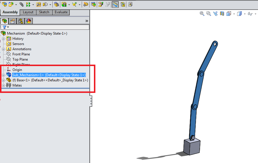 One of the great things about SolidWorks is how easy it is to navigate through the assembly tree when working with an assembly containing multiple parts or subassemblies. Often times, you’ll find yourself in a situation where a top-level assembly consists of a set of parts and one or more subassemblies. In this case, you’ll notice that the general shape and mates of your subassembly will be in the same configuration as you’ve most saved them.